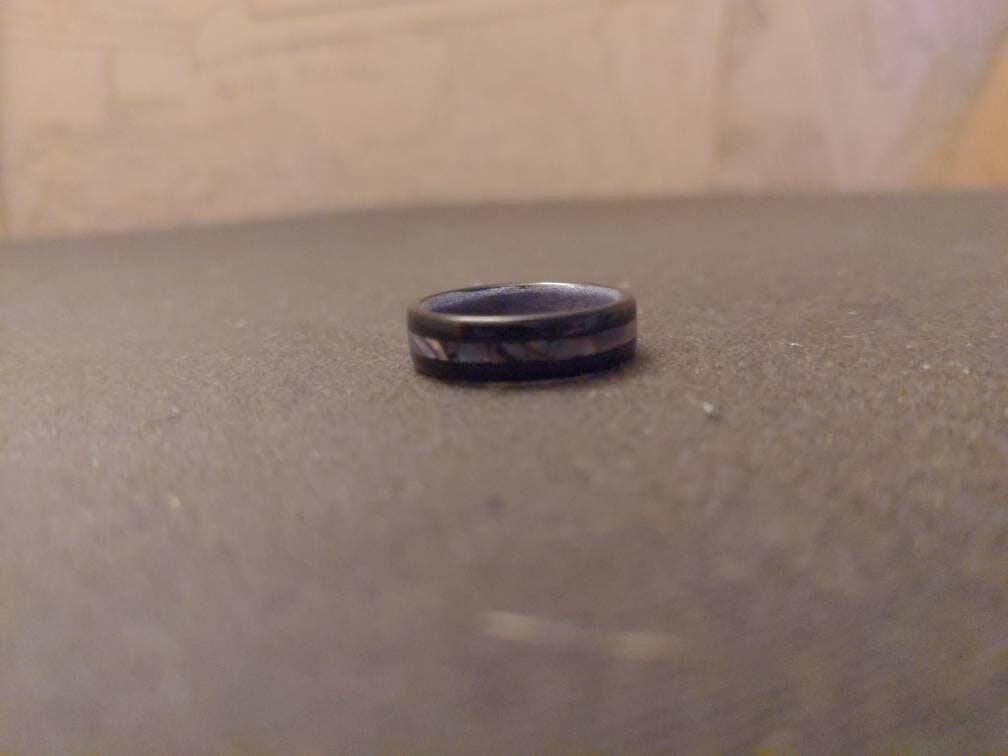 The ring is absolutely stunning, a custom ring made of black Oak, beautiful abalone and purple tulip wood! Fits so well and is very comfy to wear, when asking for the specifics of what I wanted Matt was so helpful and delivery was exactly on time. An amazing, hand made ring that is gorgeous, thank you Matt 😀