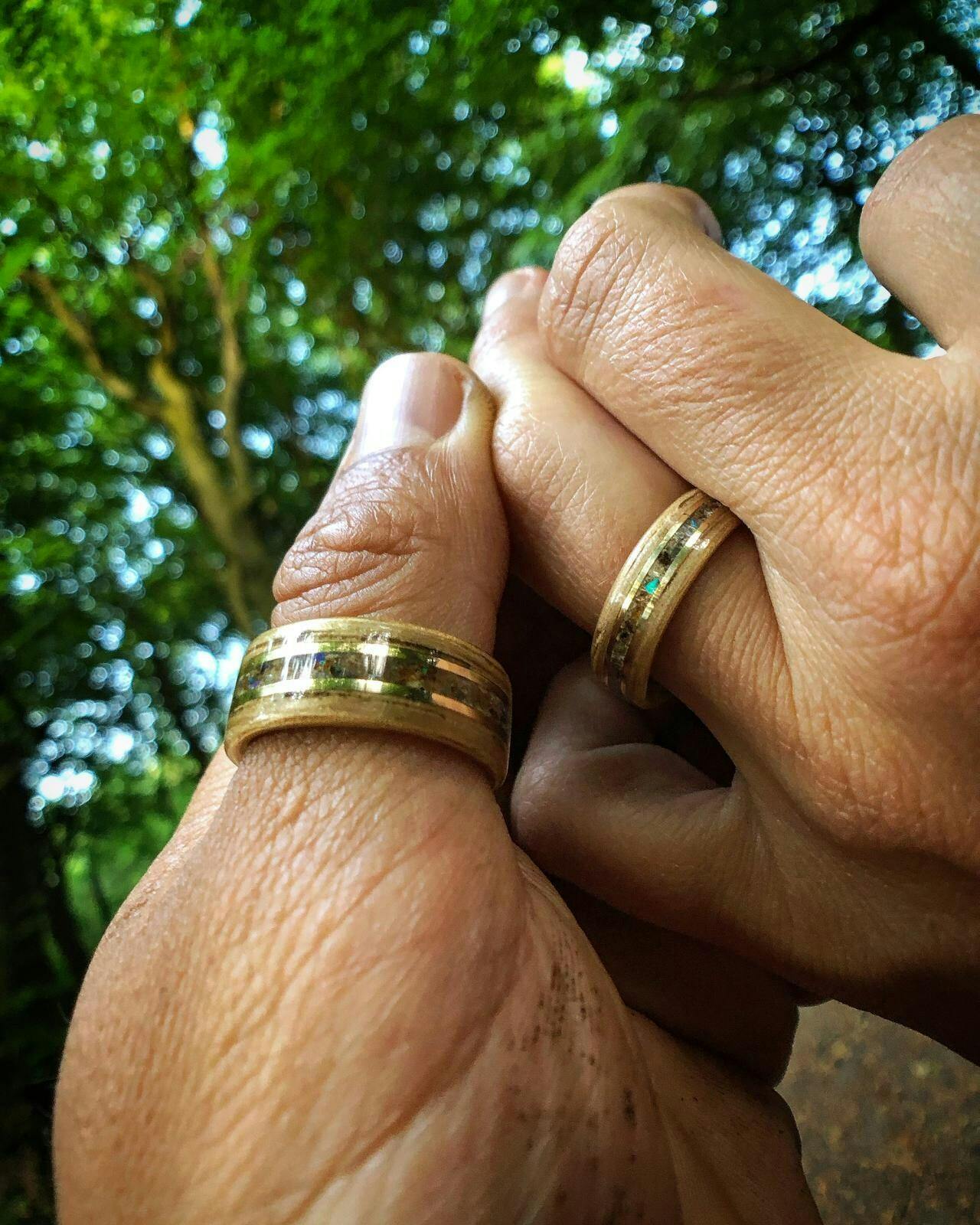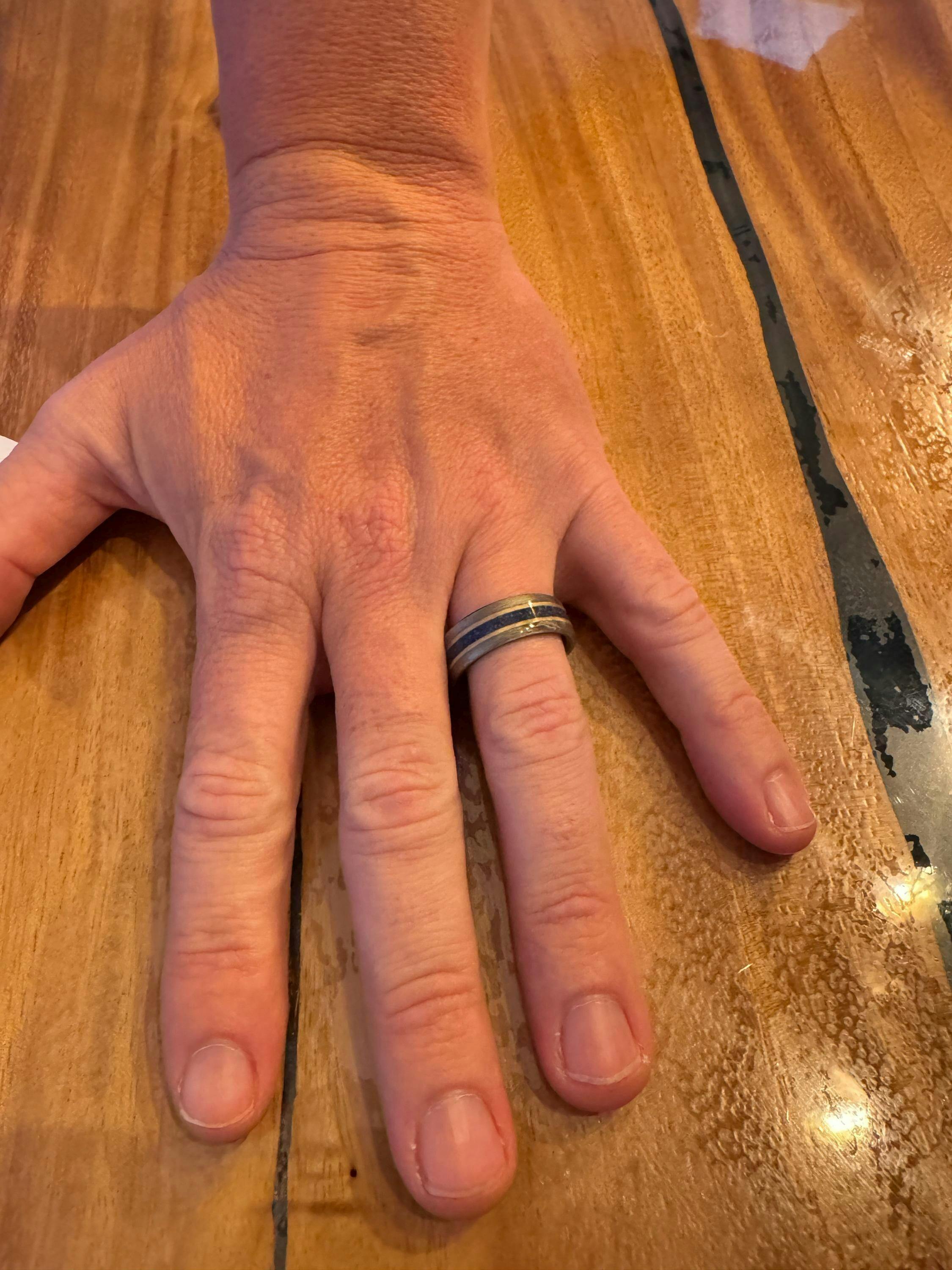 This has been a difficult project right from the beginning but Matt helped me through the whole process. He gave really helpful input regarding the ring I wanted him to make, and created something truly remarkable. My wife loves it and everyone who has seen it has asked for the link to his shop! He has made a truly personal gift by even using materials that were close to my wife that I sent over to him. The ring exceeded my expectations. Thank you for a great experience and a beautiful ring.