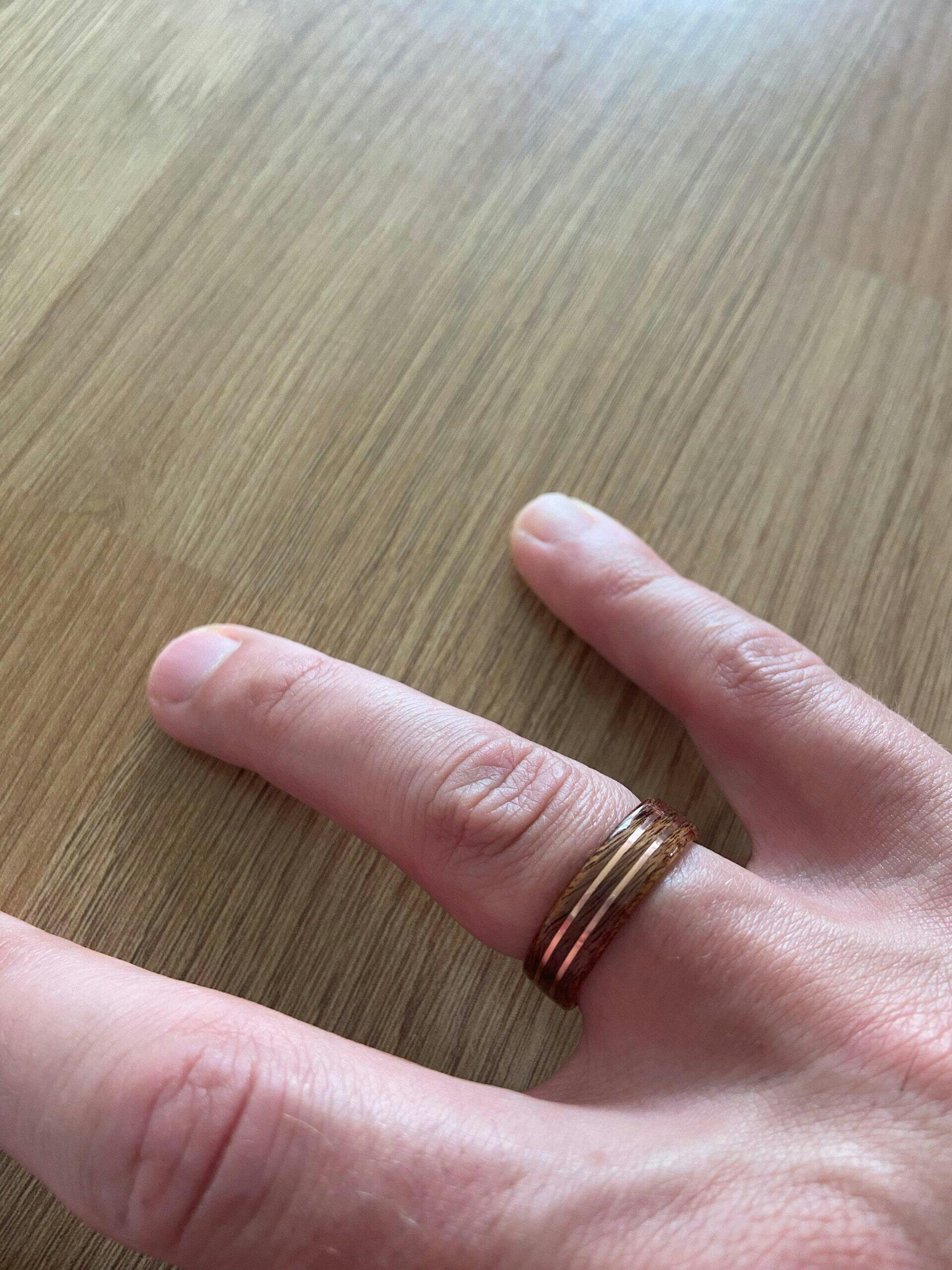 Ordered this ring with copper bands for my husband on our 7th wedding anniversary. Matt was super helpful and really helped me with delivery dates. I didn't notice the original lead time when placing the order - Matt kindly expedited so I didn't miss our anniversary by too long 😁