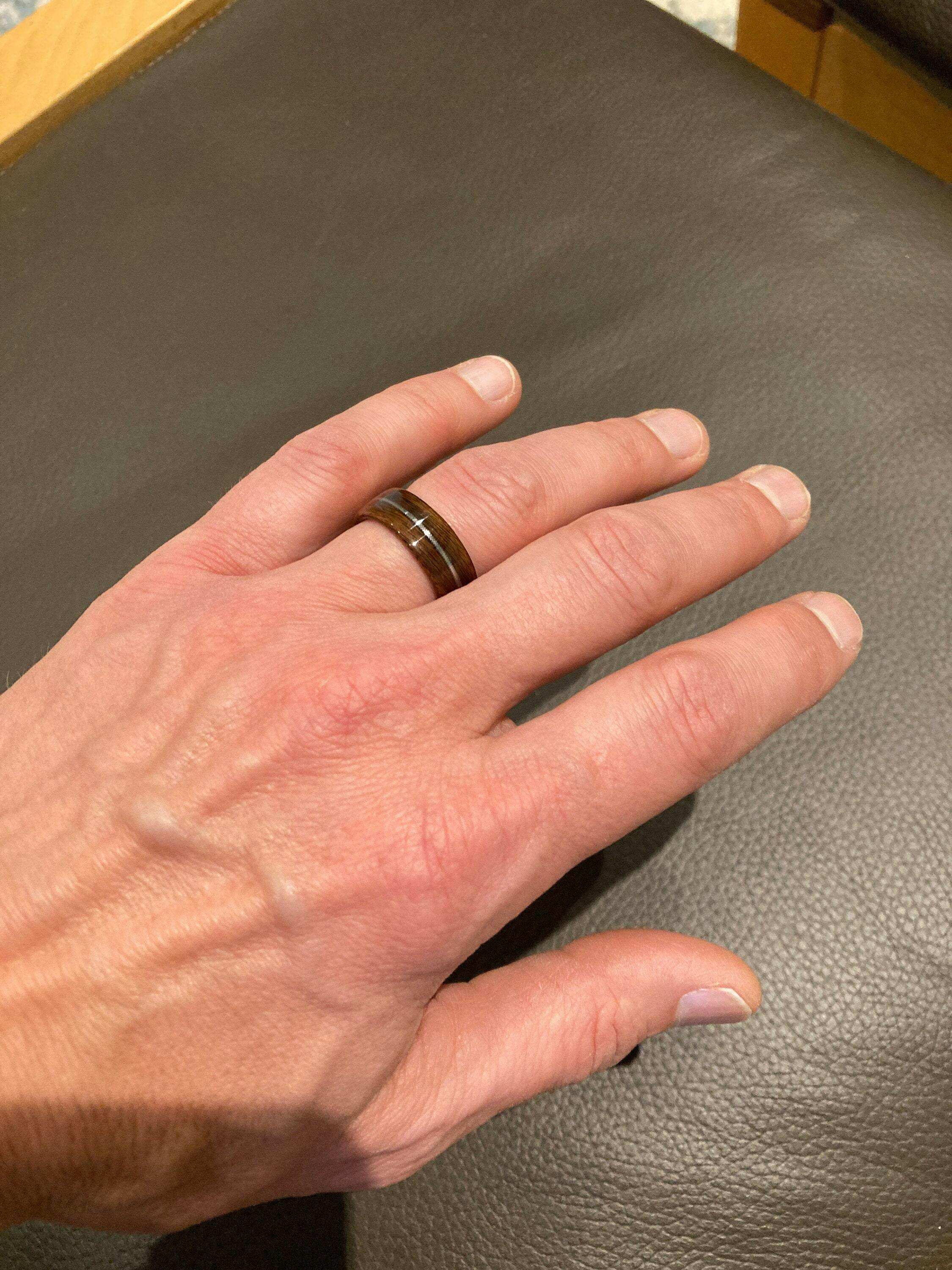 I bought this ring to propose to my partner and he loves it. The finish is stunning! Beautifully made, thoughtfully packaged, and Matt is a lovely seller too. Highly recommended.