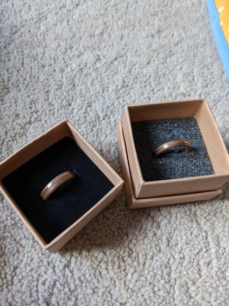 Absolutely gorgeous and so much more than I could have ever imagined! We are a rather outdoorsy couple and needed an alternative to my engagement ring to continue our adventures safely with engagement ring in tow. My walnut and copper ring is beautiful, so well crafted and arrived in amazing timing. Sizing was perfect. Thank you very much, Matthew!